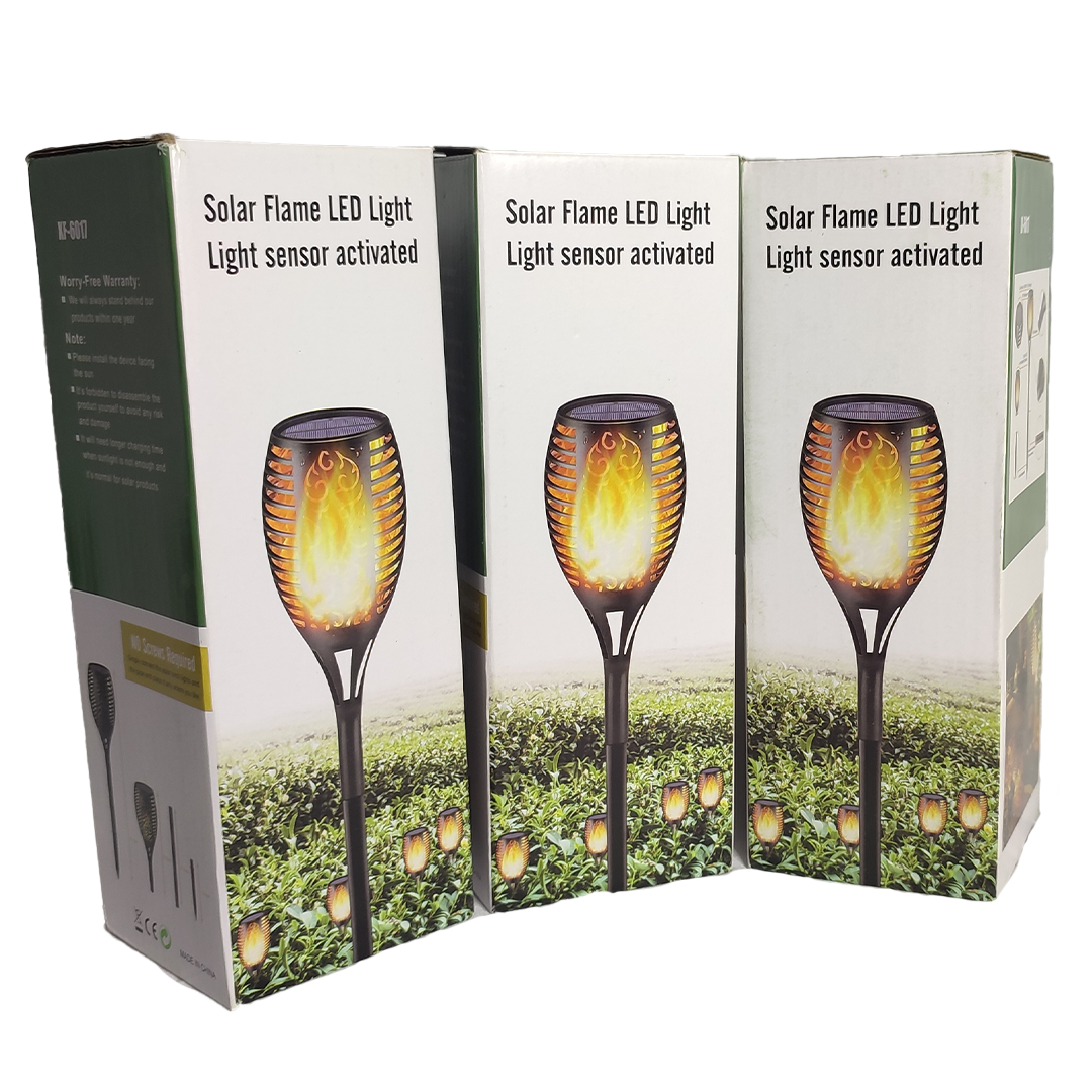 Esta luz LED solar con efecto de llama añade un toque decorativo cálido a jardines, patios o caminos. Activada por sensor de luz, se enciende automáticamente al anochecer y ofrece un diseño tipo antorcha ideal para exteriores. Eficiente, ecológica y lista para embellecer tu espacio con estilo.