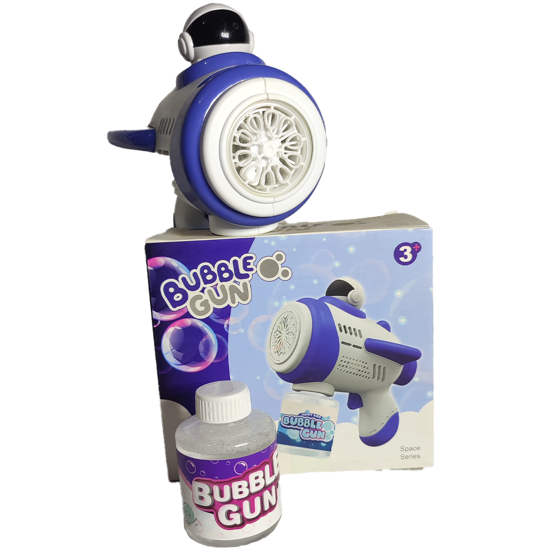 ¡Prepárate para una aventura intergaláctica llena de burbujas! Esta pistola de burbujas con un divertido diseño espacial y un pequeño astronauta en la parte superior es el juguete perfecto para los pequeños exploradores.